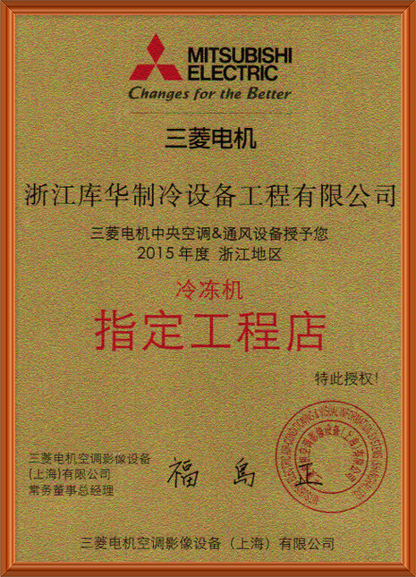 與三菱電機有著同樣的企業(yè)素質(zhì),提供優(yōu)質(zhì)的冷庫工程領(lǐng)域,提高技術(shù)、服務(wù)與創(chuàng)造力,本著嚴(yán)謹(jǐn)求實、創(chuàng)新奮進的精神,不斷完善進取,為中國制冷領(lǐng)域提供高性比的制冷工程,我們設(shè)計建造的各類冷庫工程,得到了日本、德國、新西蘭、臺灣、美國等眾多國內(nèi)外客戶高度的認(rèn)可,并多次將冷庫設(shè)備出口至國外。力求成為制冷行業(yè)庫華制冷優(yōu)秀冷庫安裝工程公司。公司完善的品質(zhì)體系贏得客戶青睞。成為三菱電機浙江省總代理指定工程店。如圖所示:
